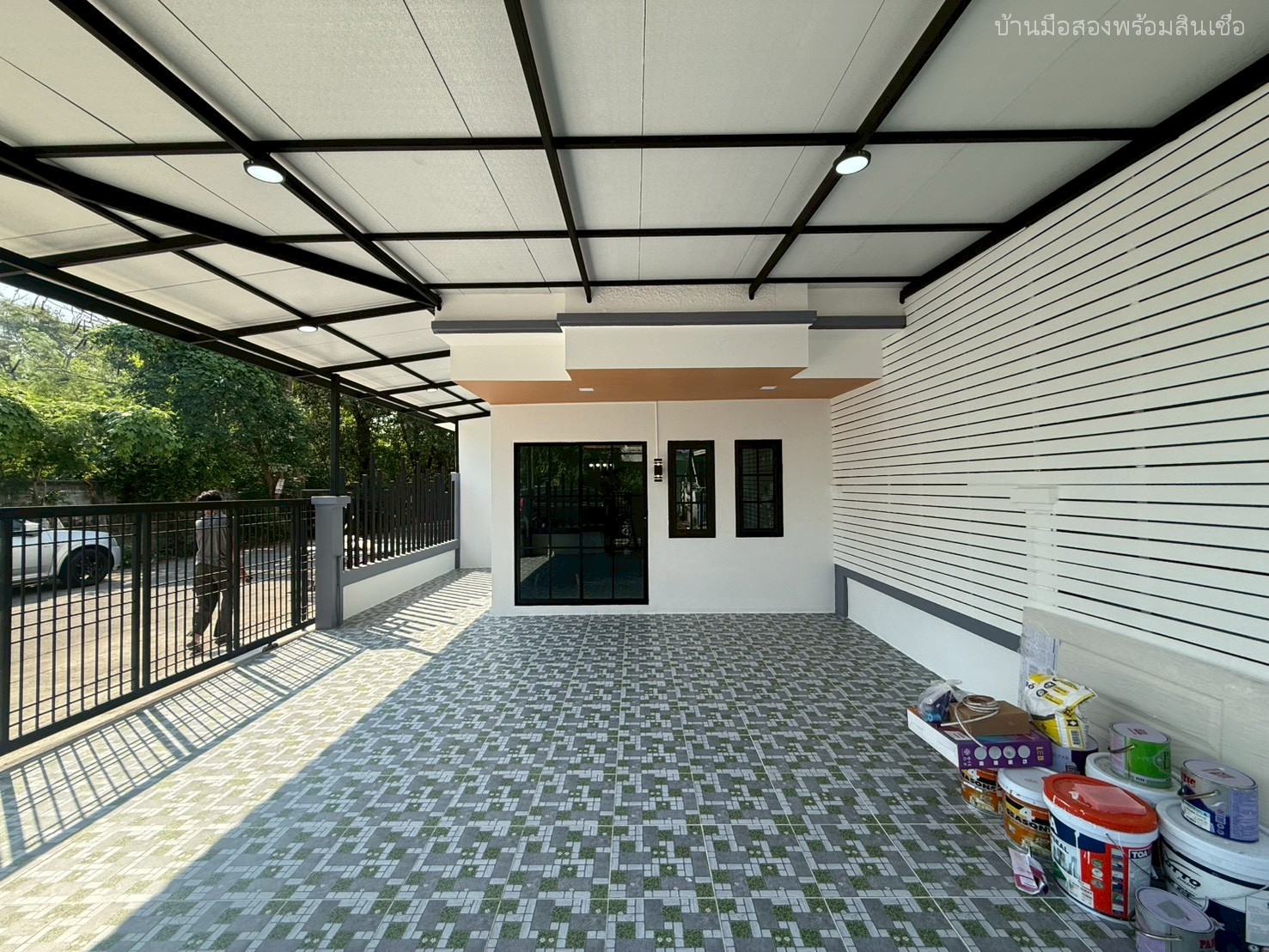 •ปูกระเบื้องโรงจอดรถเต็มพื้นที่